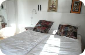 Im Schlafzimmer befindet sich ein Doppelbett,